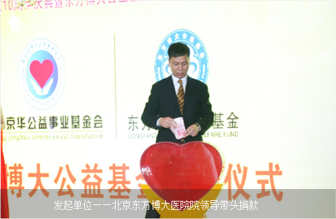 2014年8月18日,北京京华公益事业基金会东方博大公益基金启动仪式在京举行,北京京华公益事业基金会秘书长陈文育、北京市民政局慈善工作处张映宇博士,朝阳区卫生局非公医疗机构协会秘书长赵锡银,北京市朝阳区社会志愿者公益储蓄中心主任张艺馨及基金发起单位——北京东方博大医院院领导及医护人员、20余家媒体代表共200多人出席启动仪式。